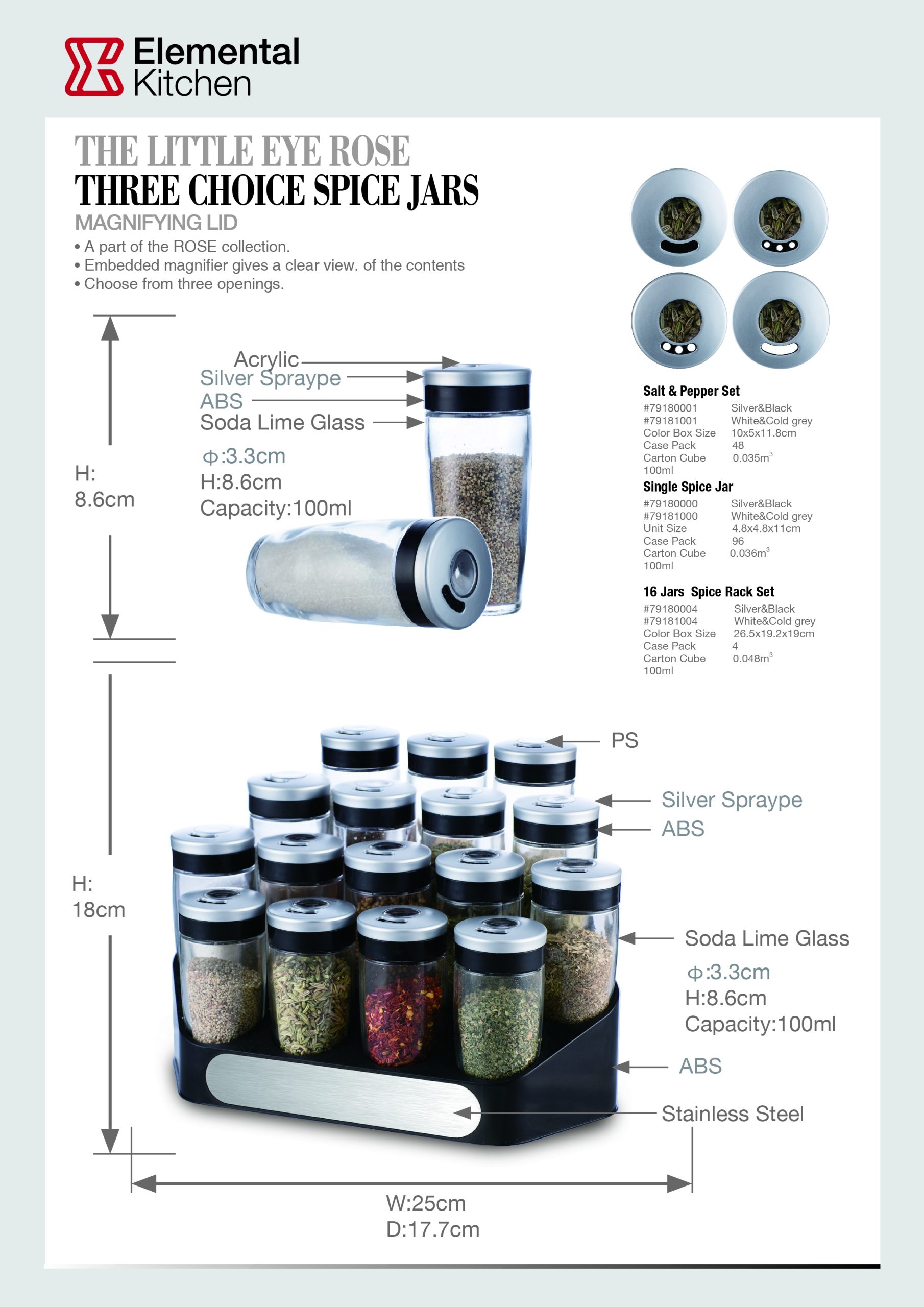 Met een stijlvolle zwarte en roestvrijstalen deksel beschikbaar op twee van onze populaire kruidenpotvormen is de LITTLE EYE geweldig om naar te kijken. Maar het is ook geweldig om door te kijken. Ingebedden in de bovenkant is een kleine vergroter waarmee je de inhoud in de pot duidelijk kunt zien. Een draai van de top geeft je drie keuzes aan openingen voor je favoriete smaken.