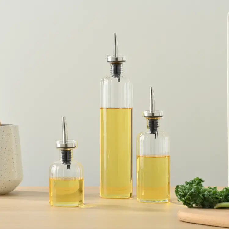 The elegant texture of our borosilicate WHEAT VIEW is seen, not felt. The outside surface is smooth and easy to handle, but the inside is our WHEATFIELD design, providing a subtle and attractive view to please your guests and grace your table. Available in three sizes, WHEAT VIEW is topped with our famous stainless-steel JUST POUR spout.