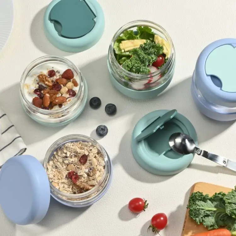 Secure lid, stainless-steel spoon included.