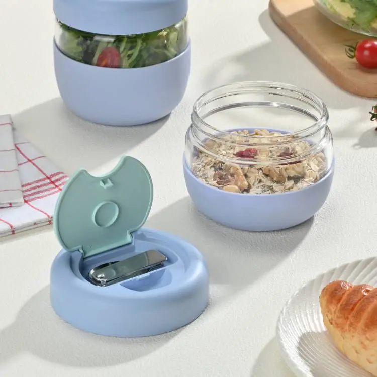 Glass and silicone portable food storage.